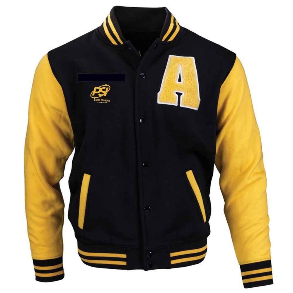 • This varsity jacket for men is made with Cotton fleece fabric.